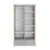 • Inside on the right 5 shelves, including 3 with adjustable height; on the left 2 clothes bars, under one of them one shelf with adjustable height