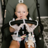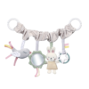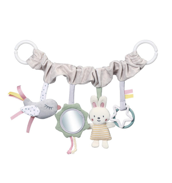 The nature hanging toy for pram and car safety is a sensory product that can stimulate a baby’s touch and eyesight, as well as improve its motor skills. All you need to do is attach it to the pram, cradle or car seat to entertain your baby during walks and travels. The hanging item covered in a pleasant-to-the-touch fabric is supplied with a rattling bird, safe mirror and protruding strings. Carefully selected pieces are attractive and arrest the baby’s attention. Your little one can play, discover the world and develop its eyes and hearing.