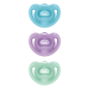 NUK Soothers have an orthodontic shape that promotes healthy oral development. This Soother is a 100% (extra soft) silicone and it is particularly gentle on the skin of sensitive or newborn babies.