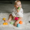 Each set includes 3 balls and 3 animals, each having a different colour, texture and shape. Their purpose is not only used for playing and stimulating curiosity, but can make excellent massage tools. A baby can gnaw on them while teething as they are made from sanitary silicone.