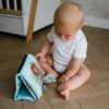 Discover the magical Safari book! A special base allows you to position the book on any surface. It also encourages the baby to spend time on its belly and rise.