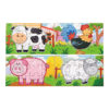 This kit includes four individual jigsaw puzzles of Farm Animals with corresponding background.
