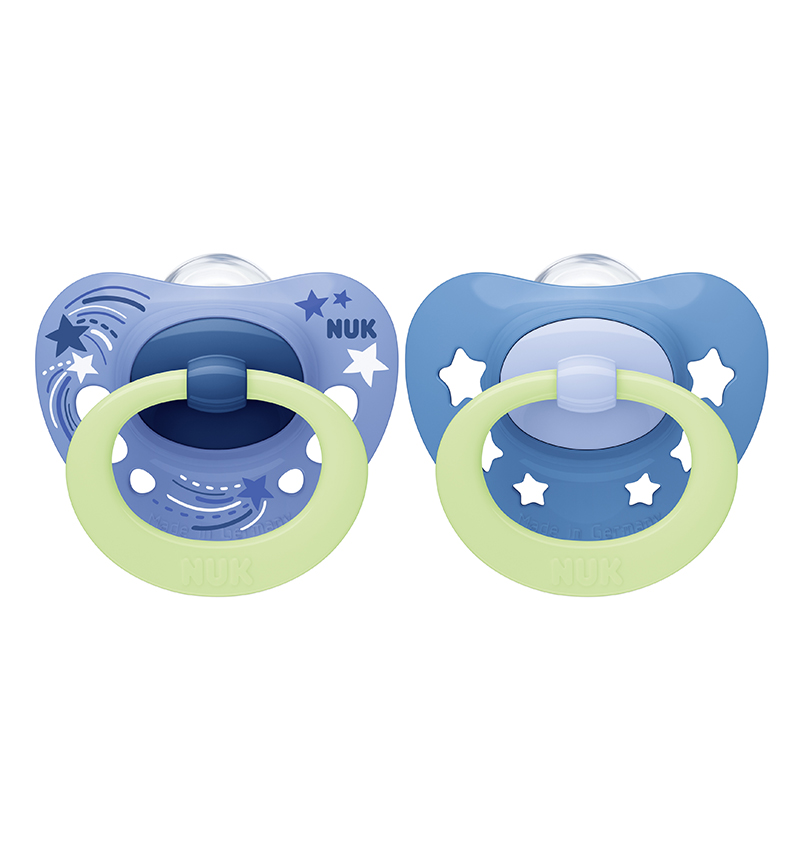 NUK Glow-in-the-Dark Soothers help babies to find their way easily to the Land of Dreams. Thanks to a baby-safe luminous material, the Soothers radiate a soft glow in the dark and can be found quickly and easily even at night.