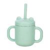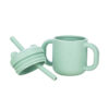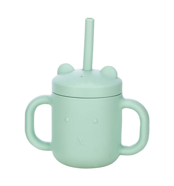 • Silicone sippy cup with handles for easier holding and a removable straw cup lid.