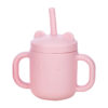 • Silicone sippy cup with handles for easier holding and a removable straw cup lid.