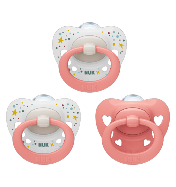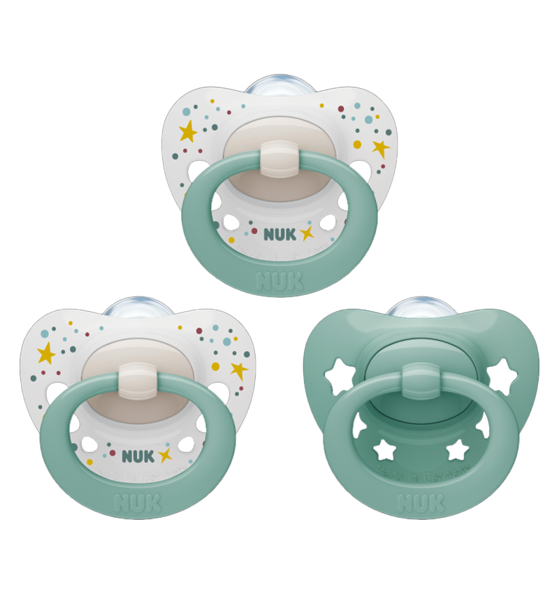 NUK Soothers have an orthodontic shape that promotes healthy oral development.
