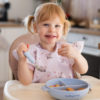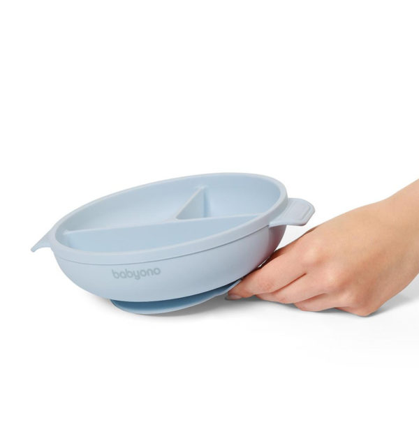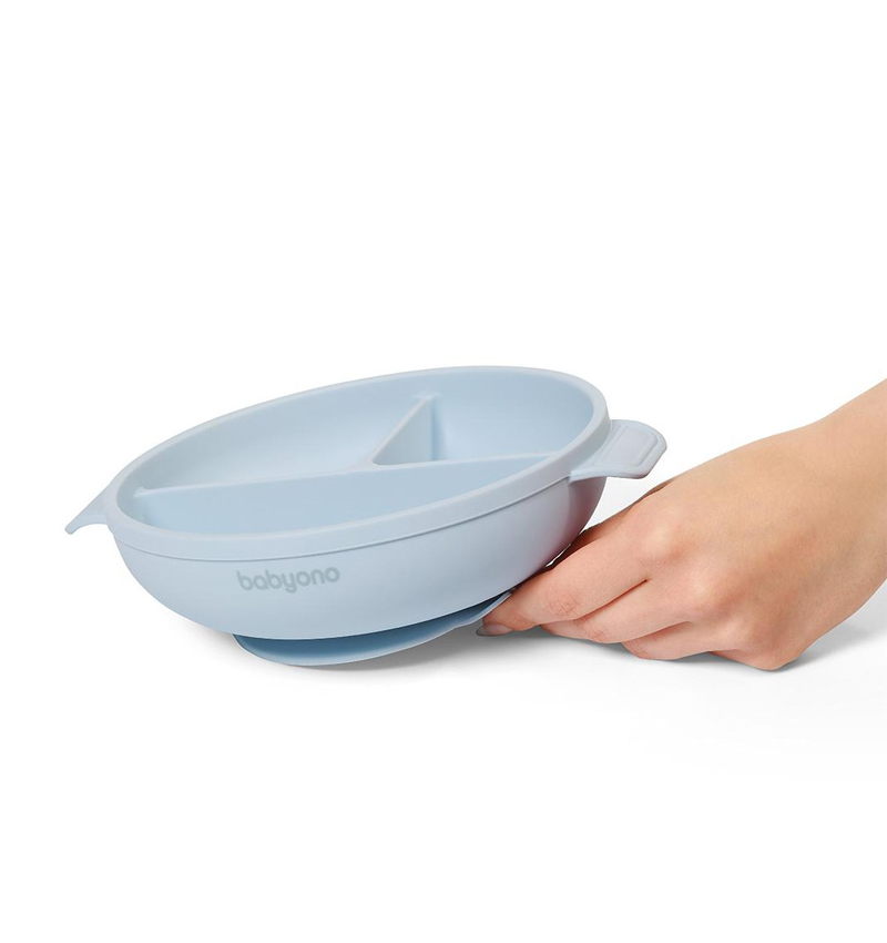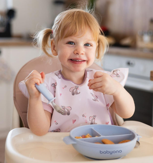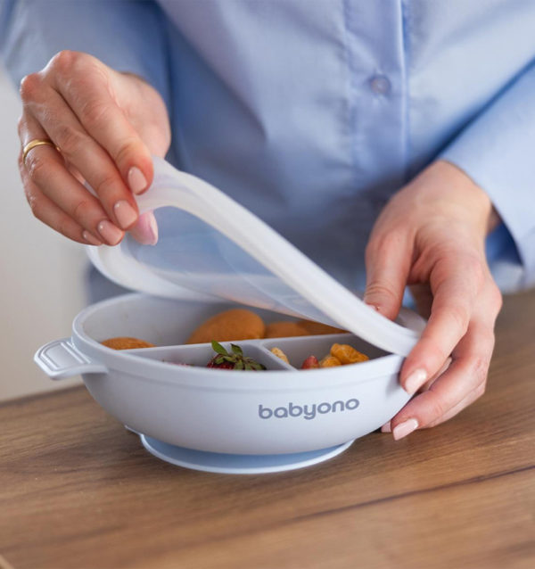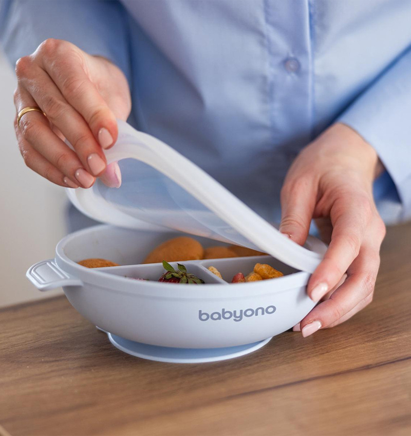 A three-compartment plate with sucker and lid by Babyono proves supportive while introducing solids into your baby’s diet, especially using a BLW method. It introduces new flavours, fosters self-feeding and prevents a mess.