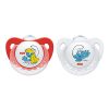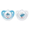 NUK Soothers have an orthodontic shape that promotes healthy oral development. This Soother features a Smurf design.