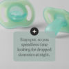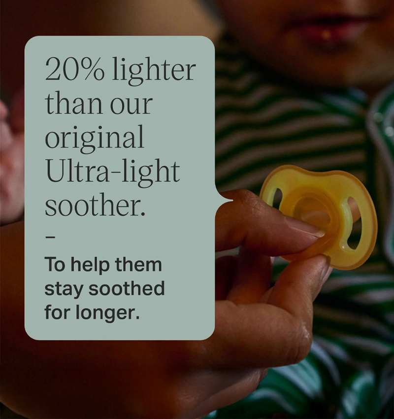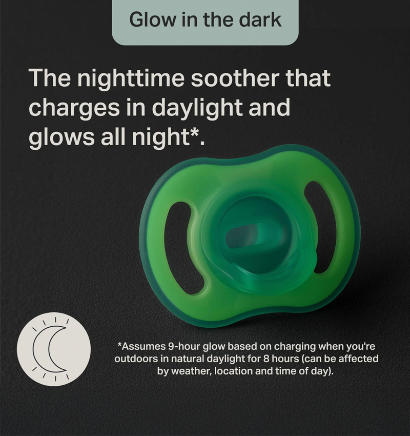 The lightest one-piece silicone soother that glows in the dark for easier bedtimes. With a soft, skin-like feel and improved airflow for extra comfort, it stays in baby’s mouth and keeps them soothed longer day or night.