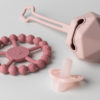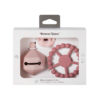 A thoughtful 3-piece set designed to calm, carry, and chew. Featuring an ultra-light soother, a matching carry case, and a teething ring, this set helps keep baby comfortable and content.