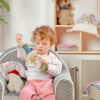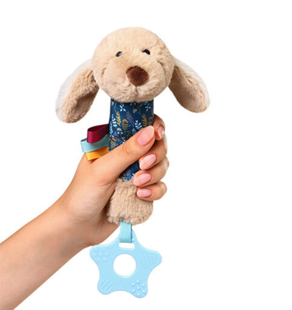 This squeaky toy with a teether is the perfect companion for your baby’s playtime and development. The sound and spatial stimuli help to stimulate the speech apparatus, while the squeaky noise teaches cause and effect relationships. The soft silicone teether soothes irritated gums during teething, offering relief for your little one.