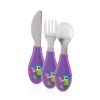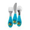 • The spoon and fork shapes are designed to safely assist self-feeding and teach good eating habits.