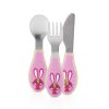 • Let little hands get to grips with this Stainless Steel Cutlery duo designed to help your baby on their way to independent feeding.Brightly coloured, stainless steel cutlery designed especially for little hands – baby safe