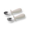 This safe cutlery set for your toddler is perfect for mastering spoon and fork use. The kit is crafted from high-quality stainless steel while its handles are based on non-slip silicone.