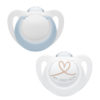 The Star pacifier is designed with a silicone teat so it is extra soft and thin. Having this feature it will be very gentle on the palate and makes space for natural development of the child’s mouth.