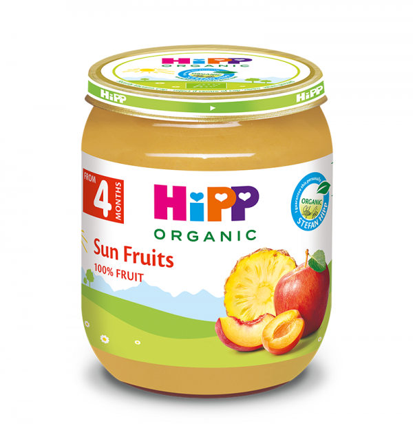 A smooth puree of apples, apricots, peaches and pineapple suitable for children aged 4 months +.