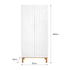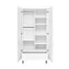• Section to the right equipped with 5 shelves, including 4 adjustable ones; section to the left equipped with 2 hanger rails and one adjustable shelf
