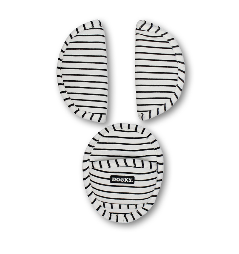 The Dooky Universal Pads: set of 3 pads (2 for shoulders, 1 for cross) for car seat 0+. Universal: fits all brands & models car seats 0+. Soft and comfortable. Prevents pinching off. Fits in seconds with Velcro, washable by hand. Perfect match with the Dooky Hoody and Dooky Seat Cover 0+.