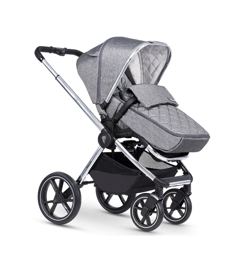 The large ventilation panel at the back ensures the baby will not get too hot during the summer months as cool air can be circulated around the carrycot. The handy feet on the carrycot ensure the base of the carrycot never reaches the ground as to protect the fabrics. The Fabric of the Venicci Tinum is not only stylish but also water repellent and UV50 protected.