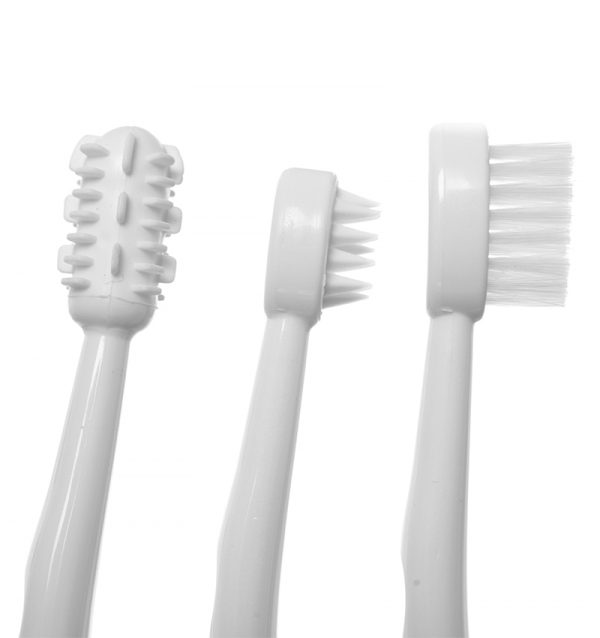 – Stage 1 brush: Soft rubber to gently massage sore or tender gums