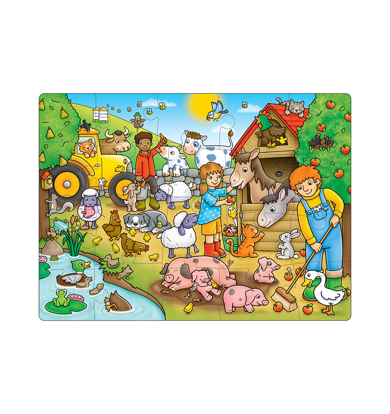 This fun 20-piece jigsaw features a busy farmyard scene with lots of animals to spot, including cows, sheep, chickens and pigs.