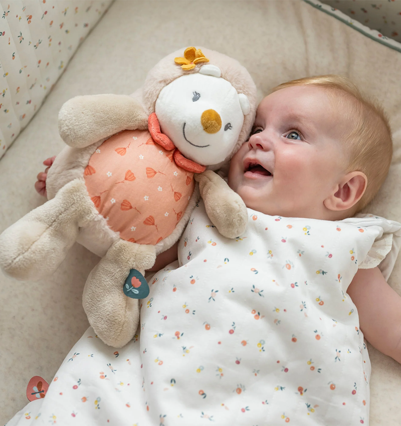 • Beautiful cuddle made of polyester and cotton that feels pleasant and stimulates the baby’s sense of touch.