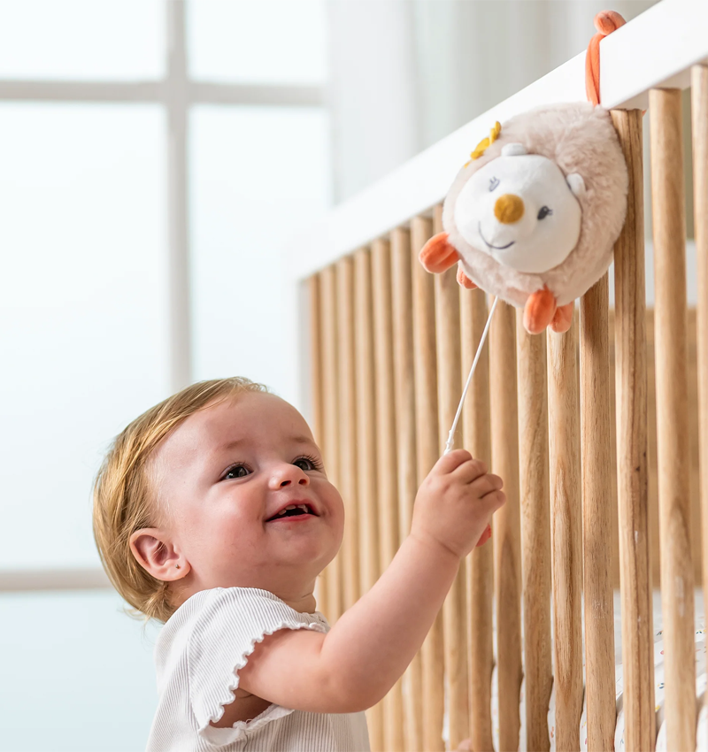 A cuddly toy with music, that’s hedgehog Zoe all the way! This musical cuddly toy with a built-in music box treats your little one to a gentle melody. Additionally, the music puller of this toy is also designed as a teething ring, not only stimulating your baby’s gripping reflexes but also soothing the pain when teeth are coming in. The fluffy fur makes music cuddly hedgehog Zoe incredibly cuddly and pleasant to hold.